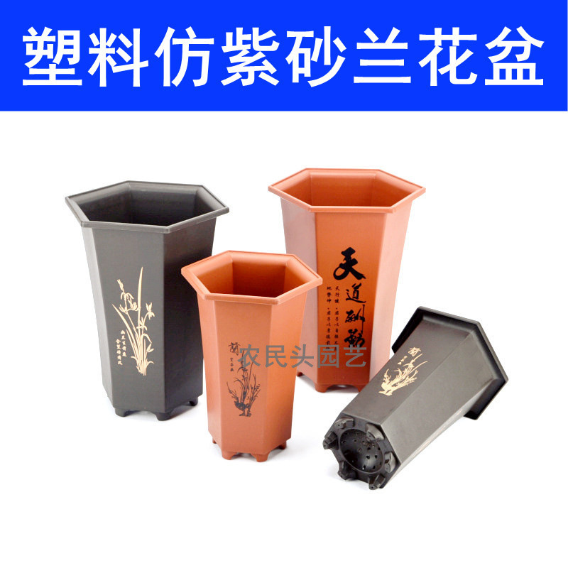 卸売りプラスチックu六角模造紫砂陶磁器蘭植木鉢大サイズ高厚プリント深み高腰盆栽盆