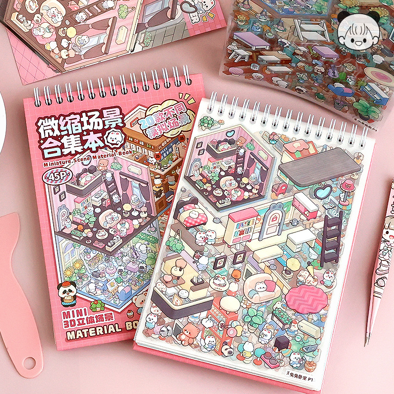 ティラドミニシーン集本造景シール立体小屋女の子子供玩具diy手帳貼り絵