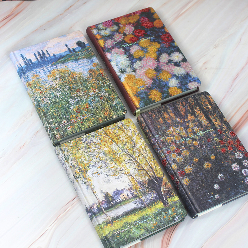 箔押し莫奈油絵の手帳は、洗練されたカラーページを並べて受験することができるノートの硬い面に日記の本を厚くすることができる