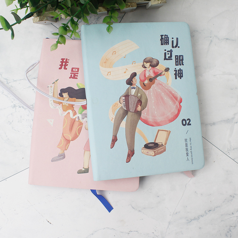 カラーページ精装本小清新日記帳帯厚ノート純色布面手帳文芸復古手帳