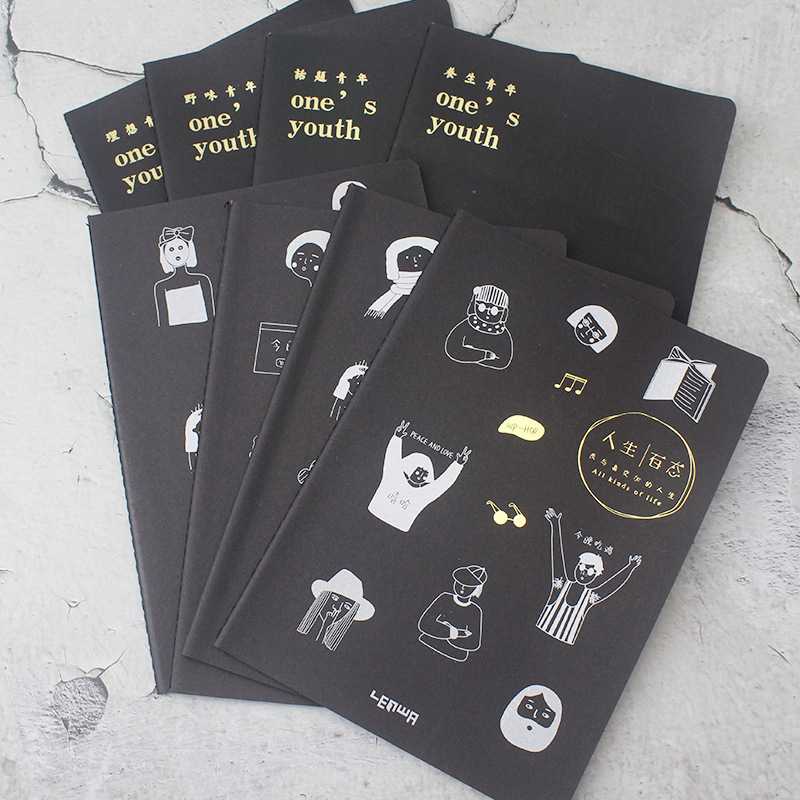 聯華文房具の車の線のノートの黒いカードの縫い目のメモ帳の黒い紙の落書きの日記の柔らかい写本のb 5
