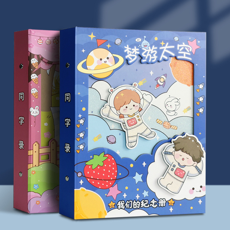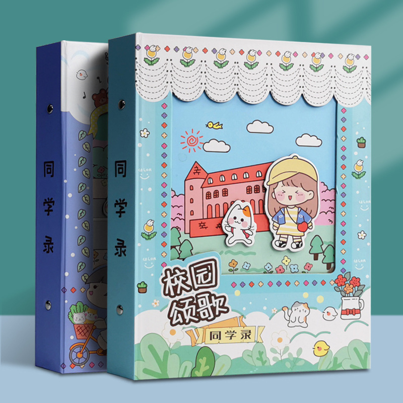 クラスメートは小学生の6年生のクールな男の子のネットの赤い卒業のクラスメートの記録のバインダーの女の子のかわいい記念冊を記録します。