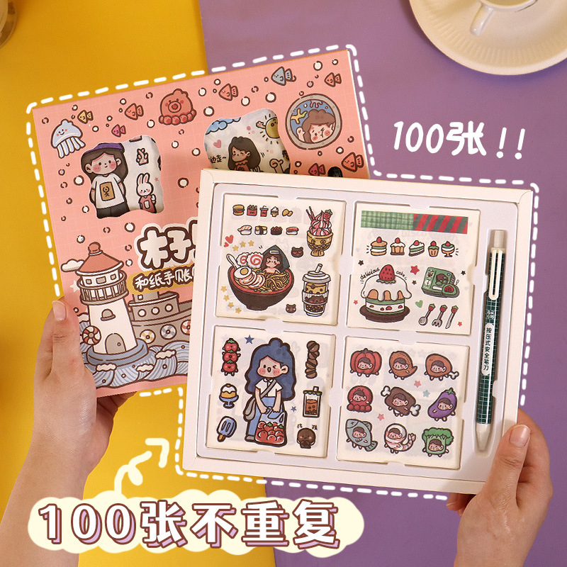 木の中の100セットの手帳のシールのセットの100枚のかわいい漫画の貼る装飾の女の子の携帯電話の貼る紙の包み
