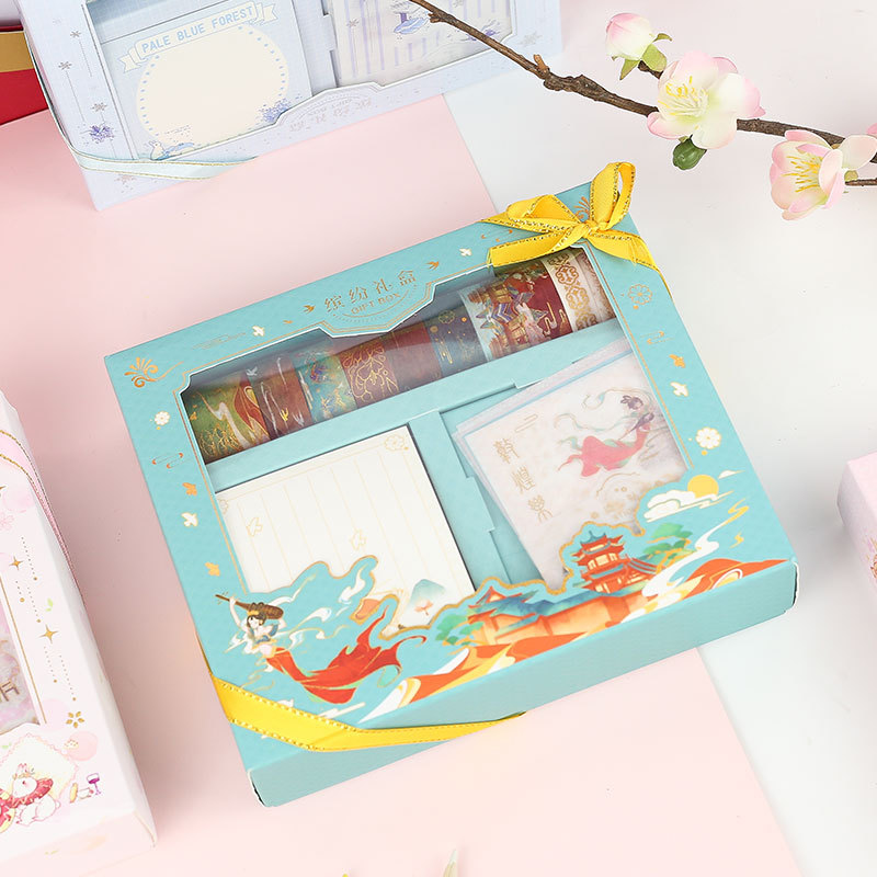 カラフルなギフトボックスシリーズ手帳素材バッグシール付箋と紙テープセット誕生日プレゼント文創プレゼント