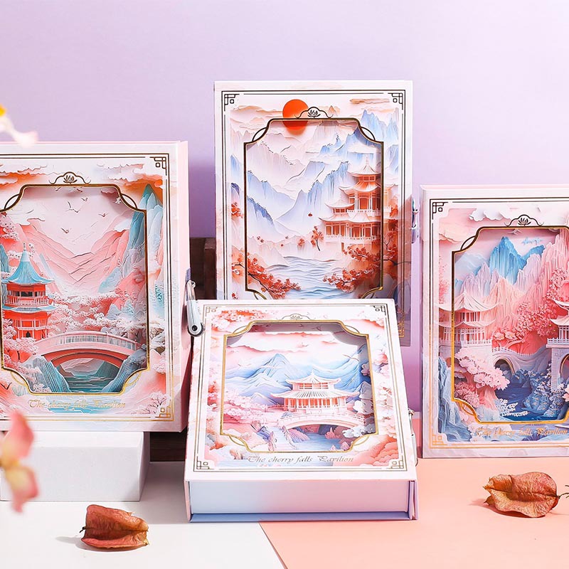 城のバラの小さい清新な立体の紙の彫刻の透かし彫りの手帳の創意の日記帳は先生の学友にプレゼントします。