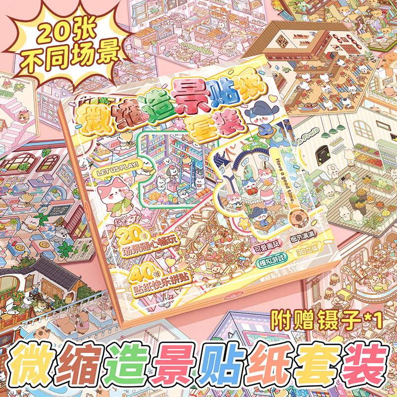 オリジナルミニチュア造園ステッカーセットビジュアルスタッキング3D立体シミュレーションシーン毎日カット不要のステッカーブック
