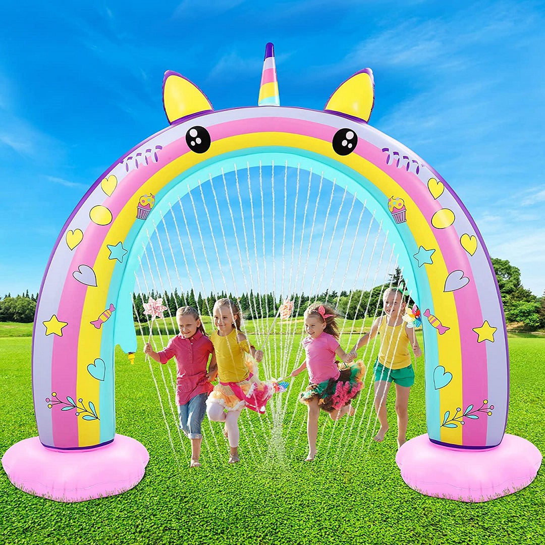 新型エア充填噴水ユニコーンアーチ大型屋外遊水玩具pvcエア充填カラー噴水アーチ