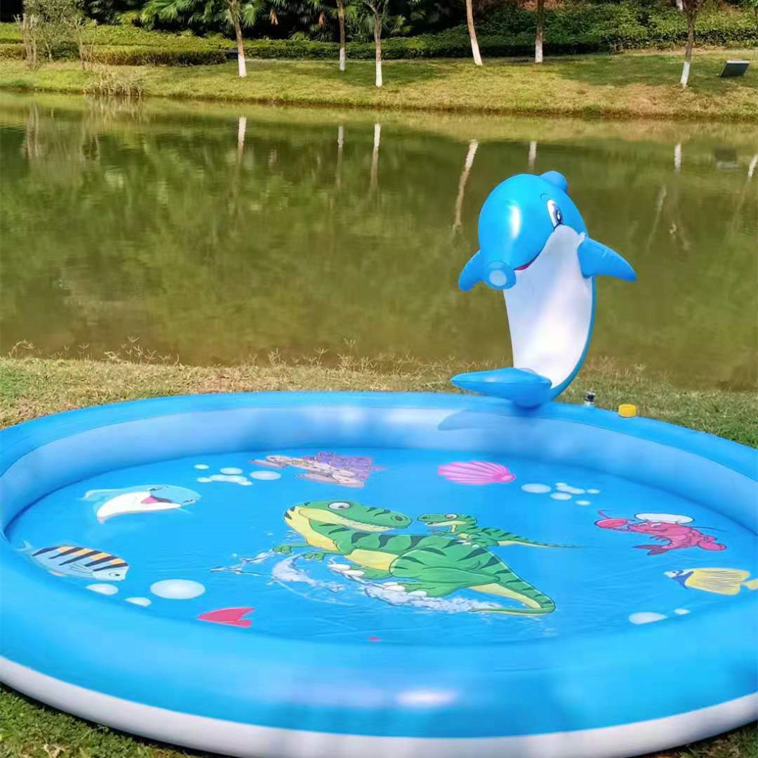 空気入りイルカ噴水池屋外サメ散水ゲームマット子供水遊び玩具カエルプールサメ池