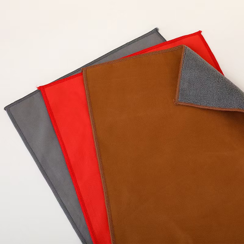複合鹿毛皮パイル洗車タオル専用自動車タオルの両面が柔らかくて、毛が落ちにくいロゴが印刷できる