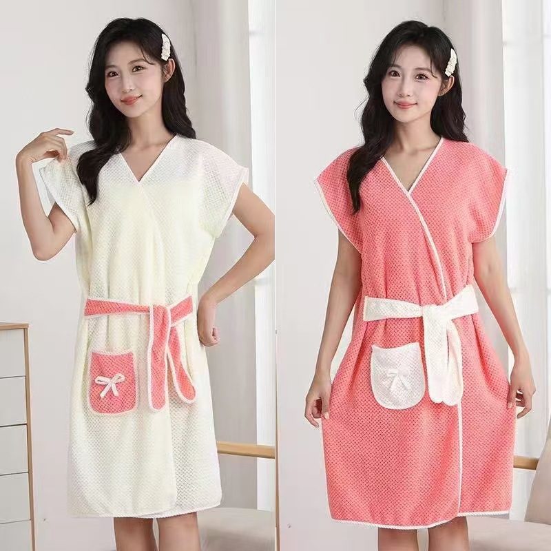 コーラルベルベットのバスタオルバスローブ、女性用、春秋冬用、長袖ナイトガウン、綿100%、吸水速乾、ネットで話題の新作バススカート