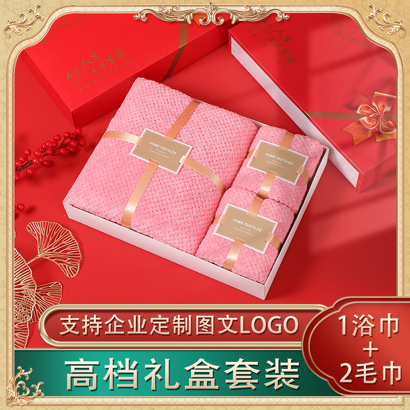オーダーメイドタオルバスタオルのギフトボックス3点セット会社福祉寿宴結婚祝いのお土産は、ギフトボックスのタオルをロゴすることができます