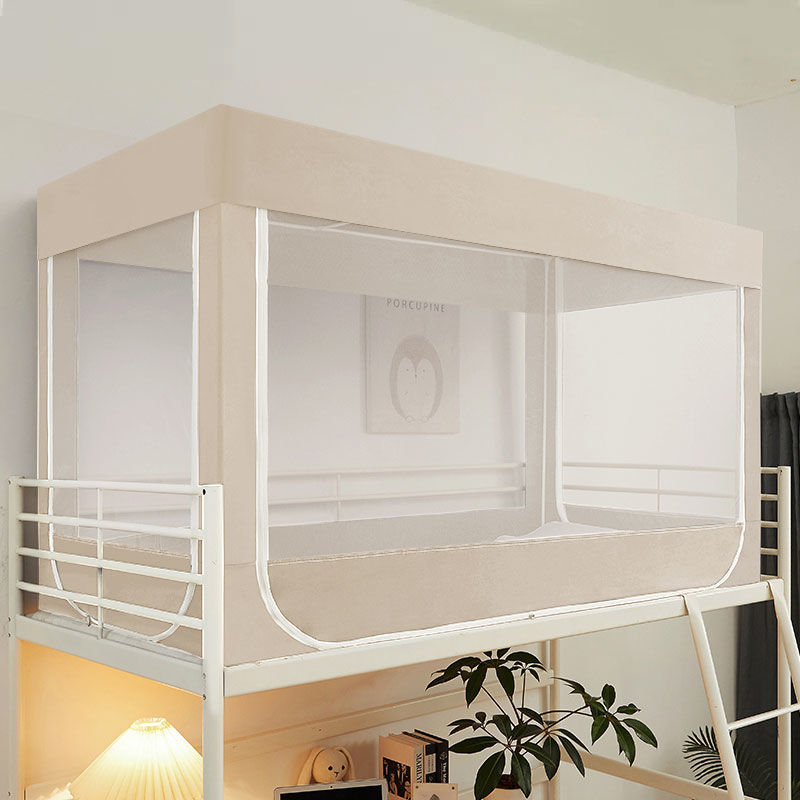 ベッドカーテン一体型蚊帳 大学生寮二段ベッド用 遮光大学用 スタンド付き シングル 完全密閉鉄