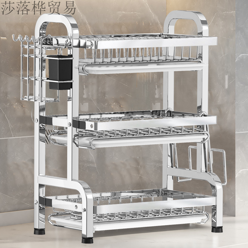 厚みのあるステンレス鋼のキッチンボウルラック、排水保管ラック、多機能カウンタートップ、箸、プレート、食器、収納バスケット、食器棚