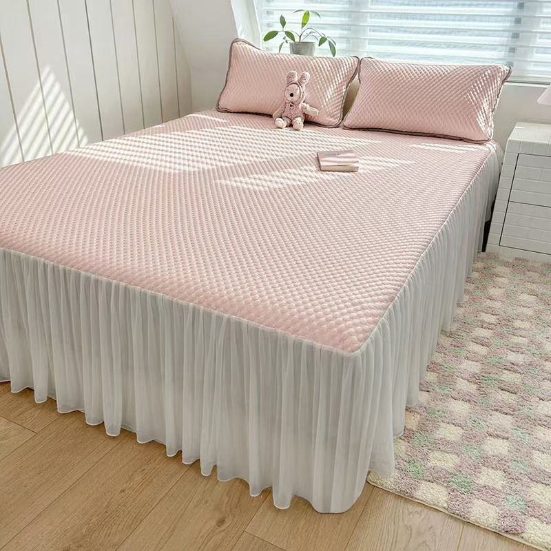 Bingdoudou マットベッドスカート 3 点セット プリンセススタイル 夏用 アイスシルク 洗濯機で洗える 2 点セット 空調ソフトマット