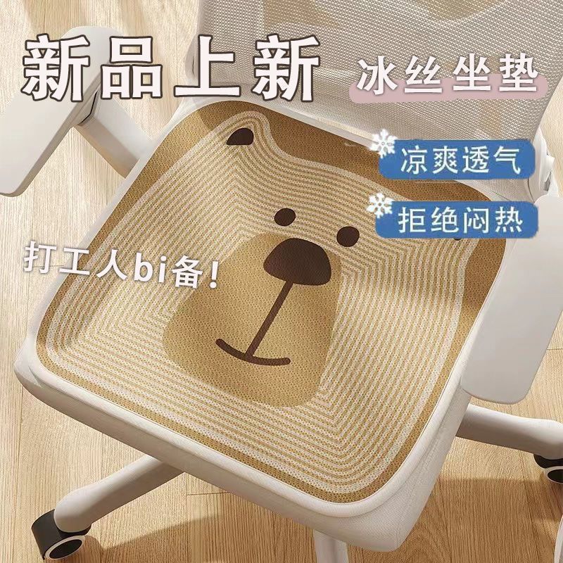 漫画通気性のかわいいアイスシルク椅子クッション滑り止めマットオフィス学生座り椅子クッションお尻クッション布タイプ