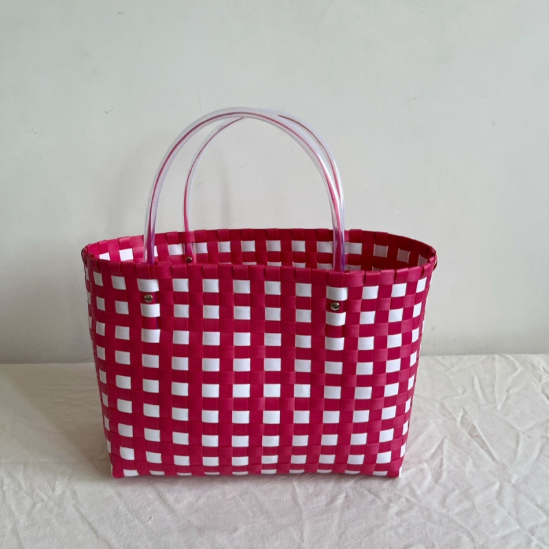 手織り野菜バスケット ハンドバッグ ビーチ キャンプ ピクニック ピッキングバスケット ドーパミン野菜バスケット