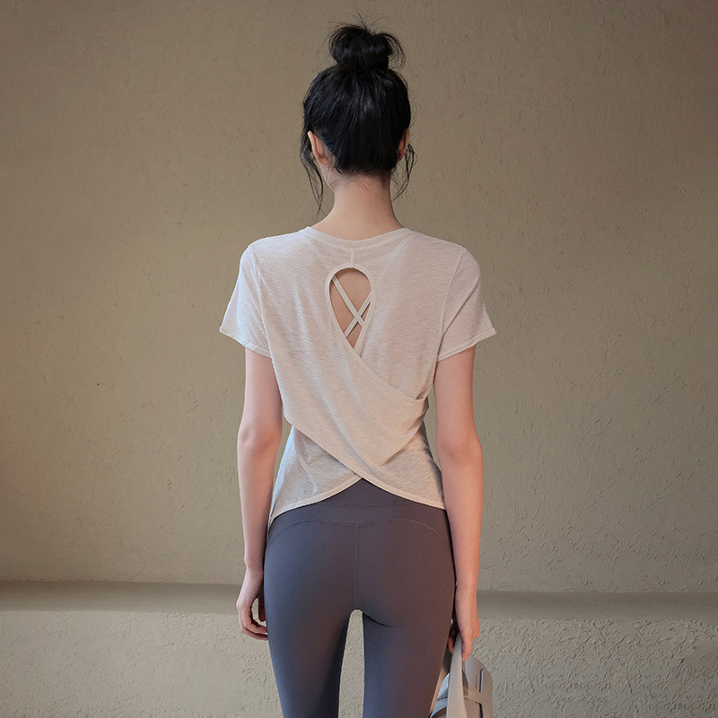 女性用ヨガウェア、夏用スポーツトップス、美しい背中、ゆったりとした通気性のあるブラウス、ランニング半袖速乾シャツ、フィットネスウェア