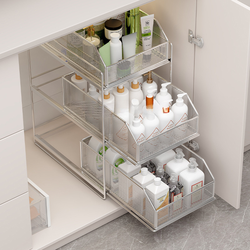 シンク下収納ラック、収納ラック、キャビネット、バスルームキャビネット、シンク下キャビネット、プルアウトバスケット、引き出し式多層