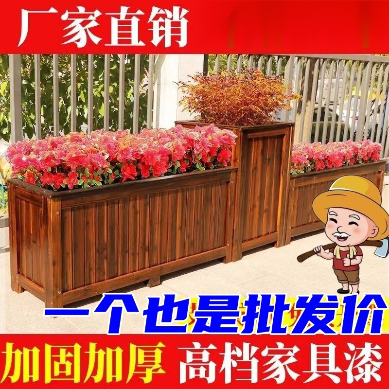 防錆木製フラワーボックス組み合わせ長方形エンジニアリング炭化無垢材植木鉢植栽ボックスバルコニー炭化無垢材フラワーボックス