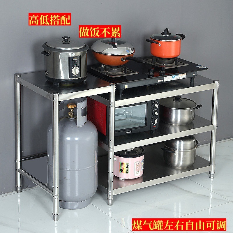 ガスタンクラックキッチンラック収納ラックステンレス鋼ストーブラックガスタンク収納電子レンジツーインワン