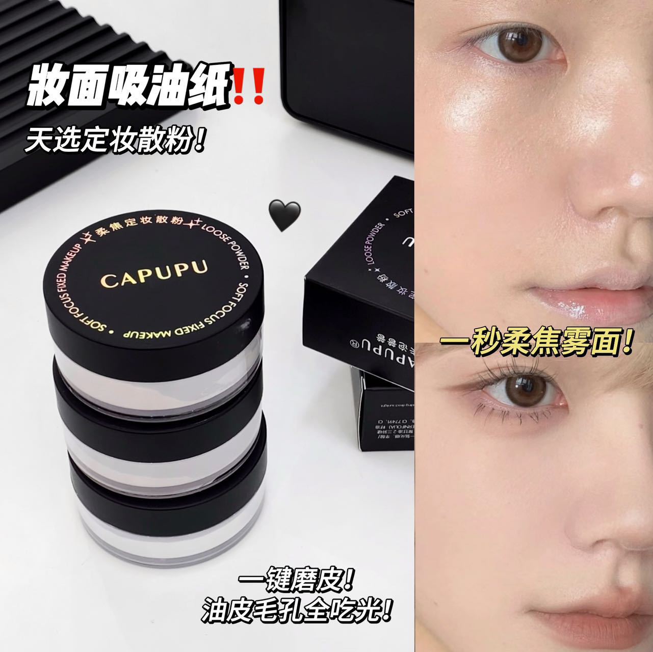 CAPUPU 黒磁性パウダーセッティングパウダーコンシーラーオイルコントロール長持ち防水防汗非除去メイクアップマイクロダーマブレーションパウダーパウダー女性用