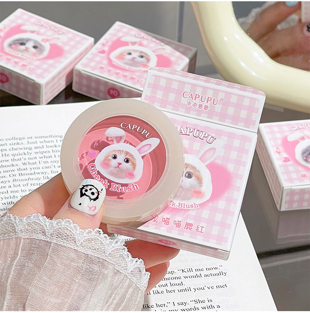 かわいいペットのニャーチー頬紅単色ピーチマットマットルージュナチュラルブライトニングカラーかわいい漫画チークパレットトレンディ
