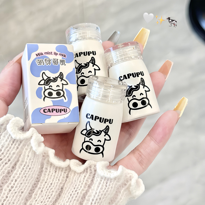 クリエイティブ漫画牛リップクリーム口紅ベースケアフェードリップラインミルク風味保湿リップクリームライブストリーミング