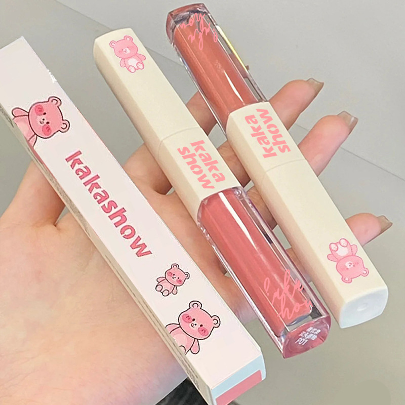 双頭の唇の釉薬のつや消しの霧の顔のベルベットの鏡面の水の光の唇の蜜の水晶のぶつぶの唇の漫画の熊の少女の心の口紅