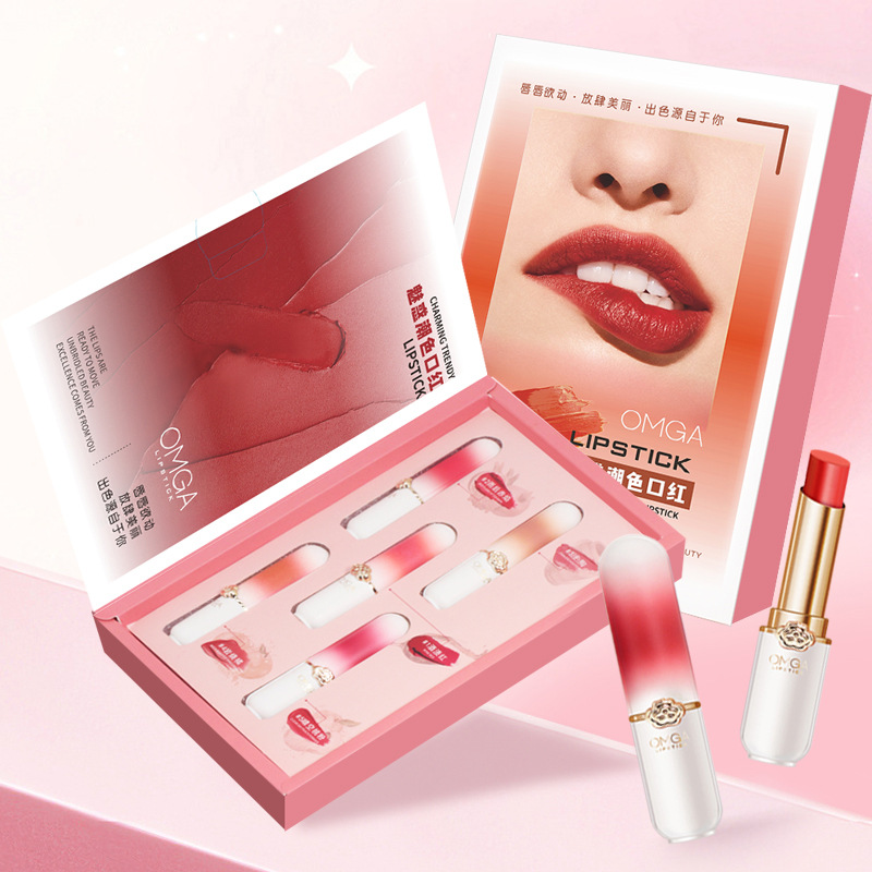 OMGA ピーチリップスティック口紅セット保湿と色褪せしにくいマット口紅長持ち防水クロスボーダー直接供給