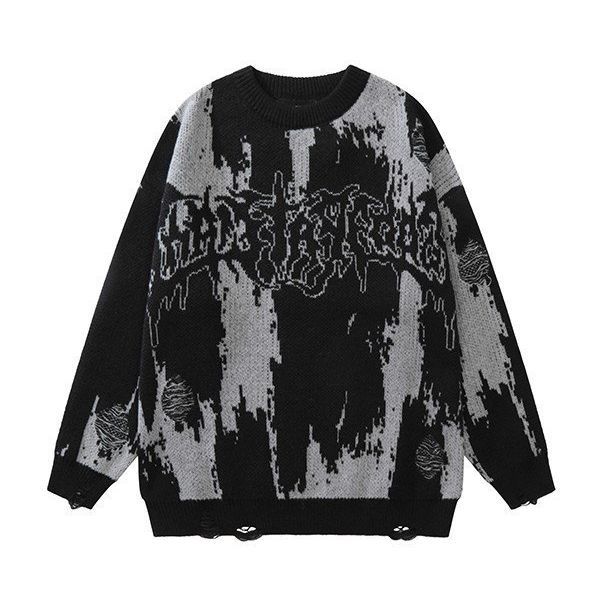 国境を越えた欧米街頭ヒップホップジャカードセーター街頭ゆるい頭蓋ジャカード長袖セーター男女破穴
