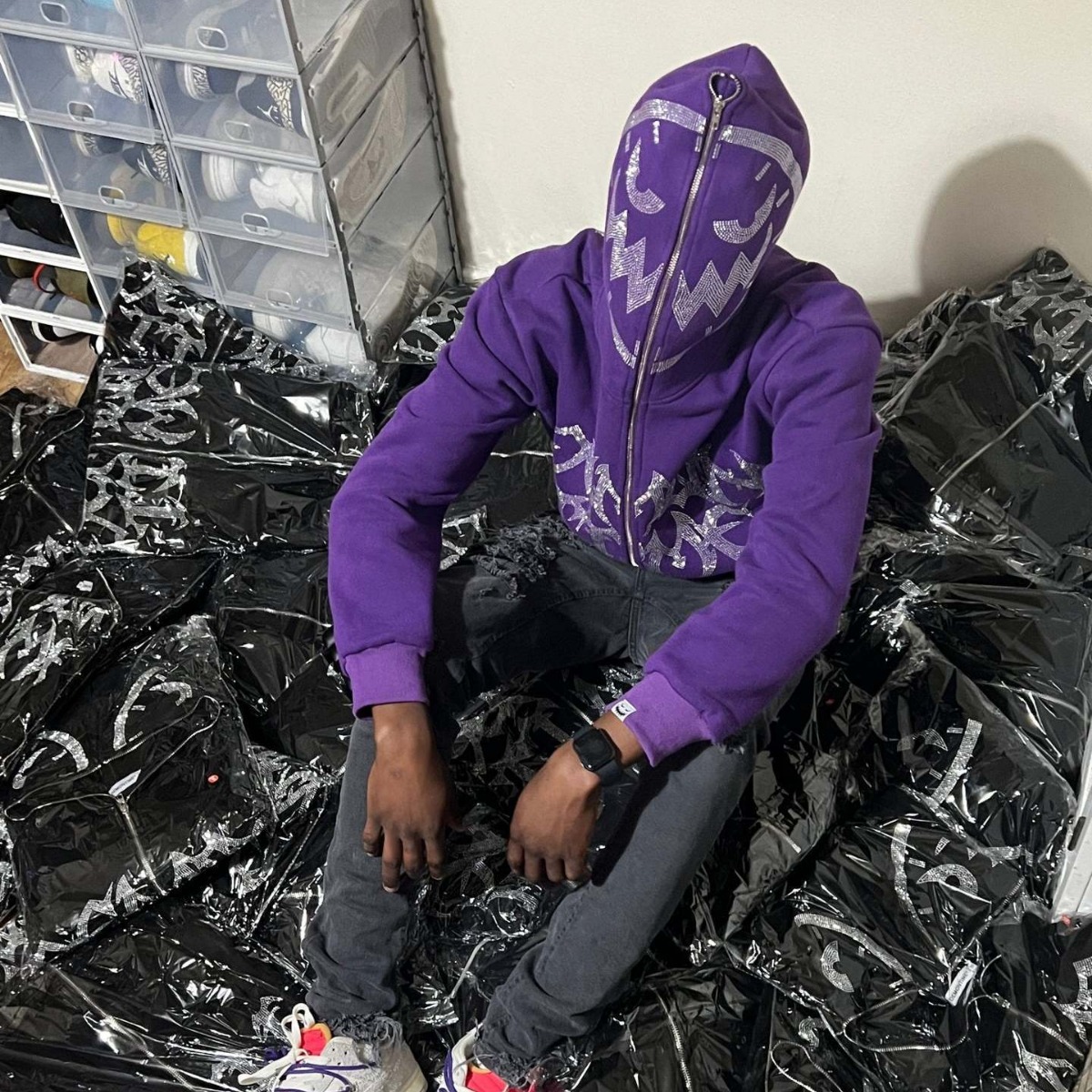 国境を越えたアマゾン秋冬ヒップホップ風暗黒鬼顔ホットドリルフード付きゴートジッパーカーディガン男女コート