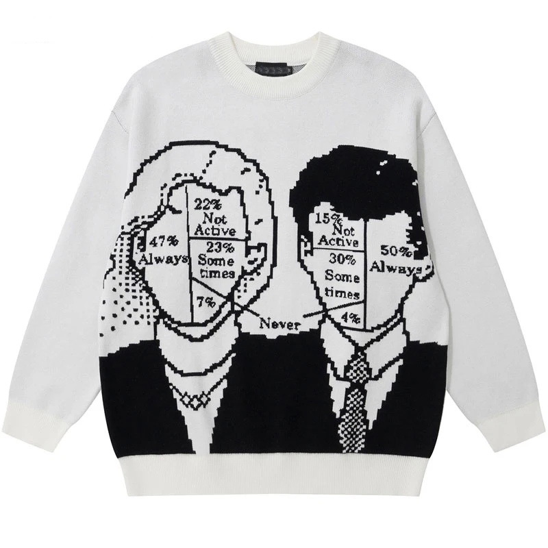 欧米の原宿の街頭のファッションのカジュアルな抽象的な男はジャカードのニットの男女のようです。