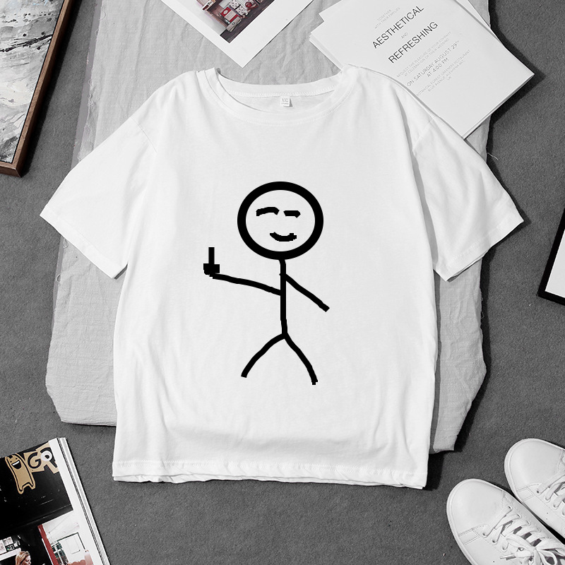 純綿の暗黒の悪は簡単な画数のかわいいプリントのカジュアルなお笑いのtシャツの男女の金の丸首のカバーの頭のゆったりしている半袖を作ります。