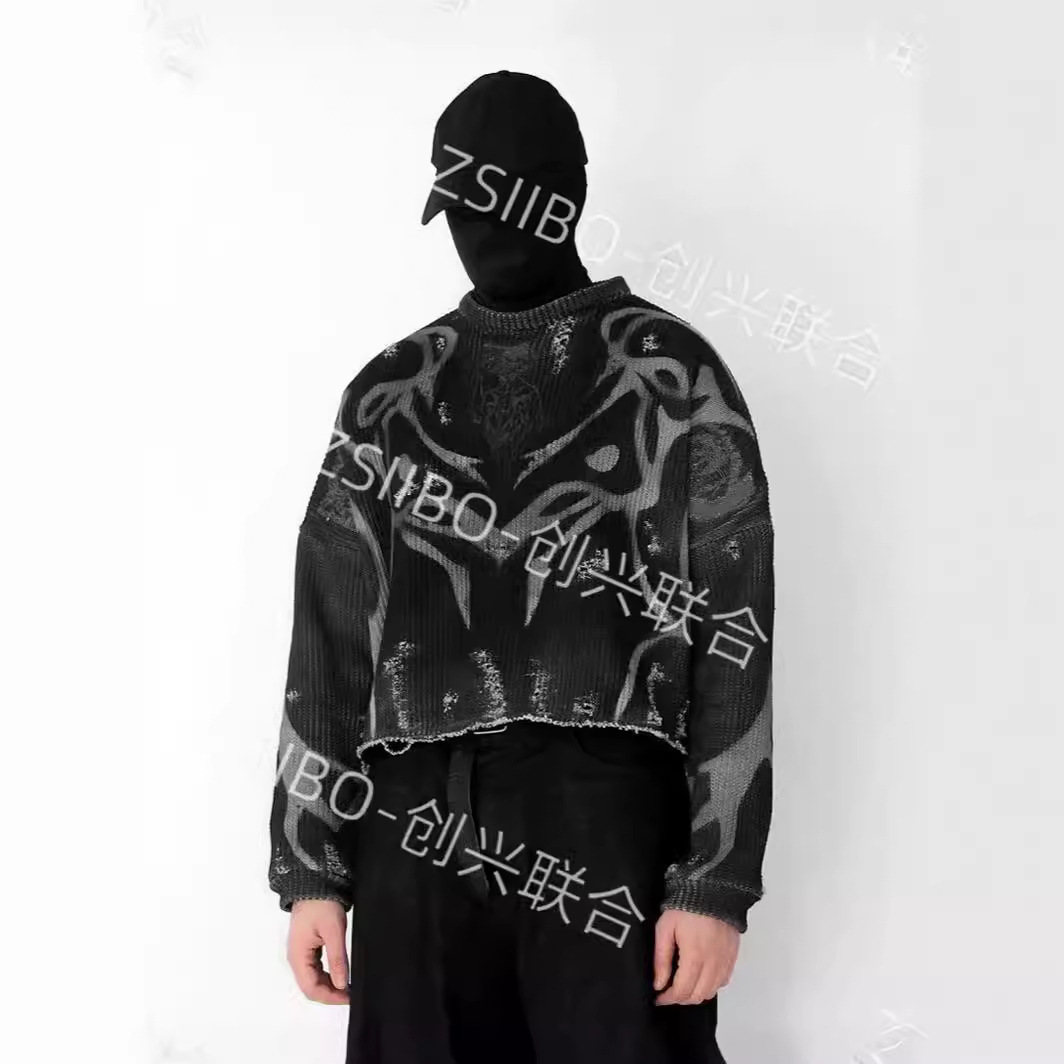秋冬の新型レトロな人は街頭のゆるい大きいサイズの婦人服のジャカードのニットの欧米の街頭のファッションの男性のセーターのようです。