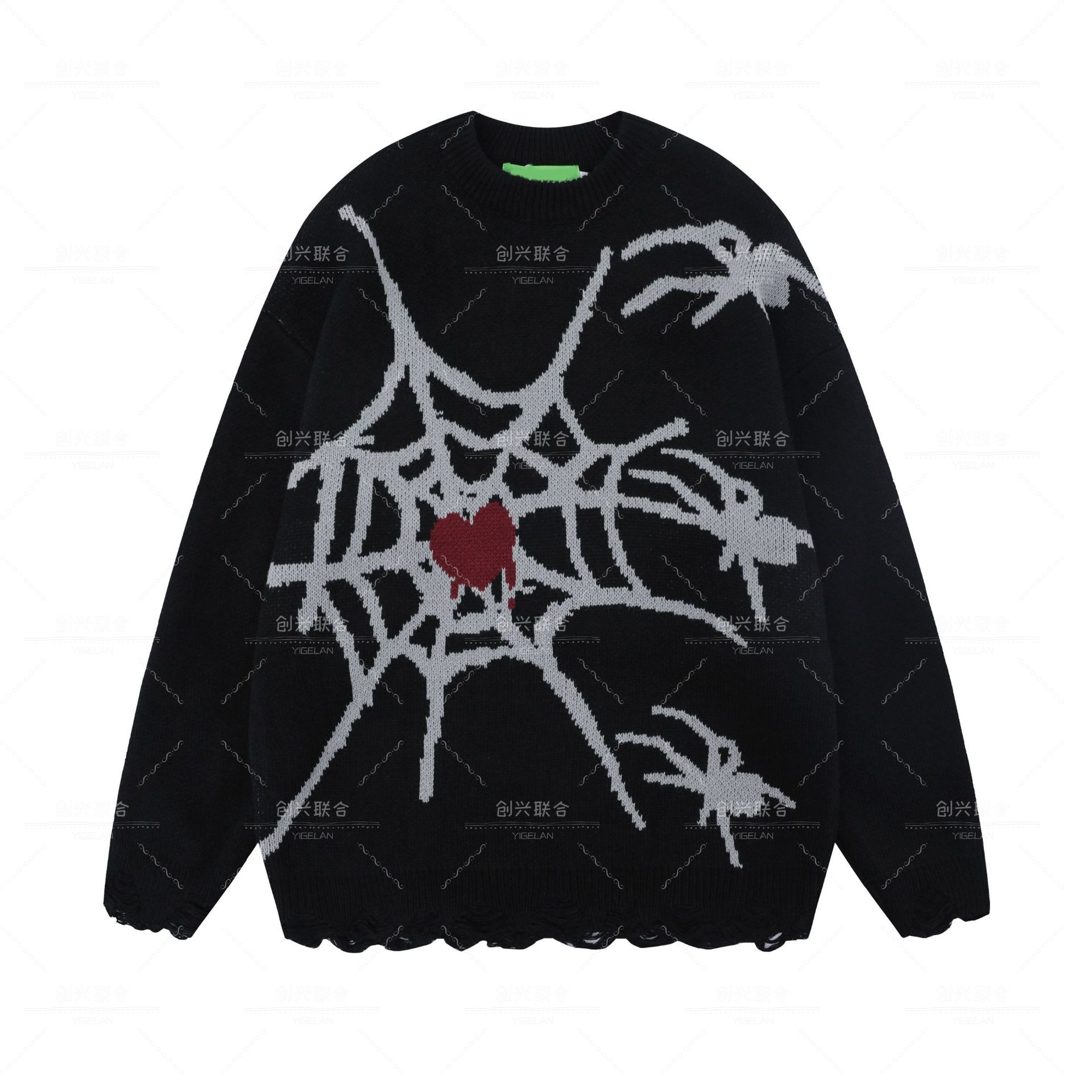 欧米の破損ハロウィーン蜘蛛の巣愛ジャカードニット