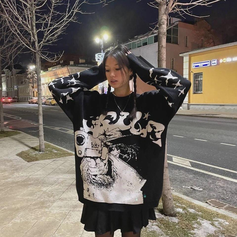 秋冬の欧米風の大きいサイズの婦人服のプルオーバーのジャカードのニットの保温のセーターの男性のカップルのゴシック式のヒップホップ