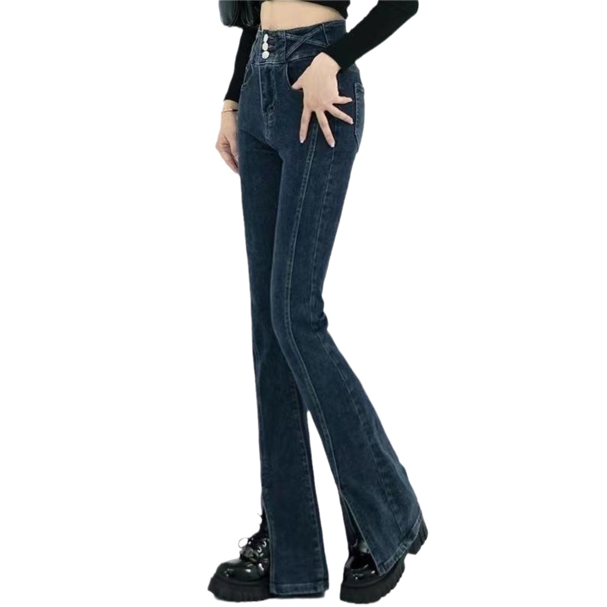 ギャルのセクシーな修身側の縫い目は前に立って痩せています。