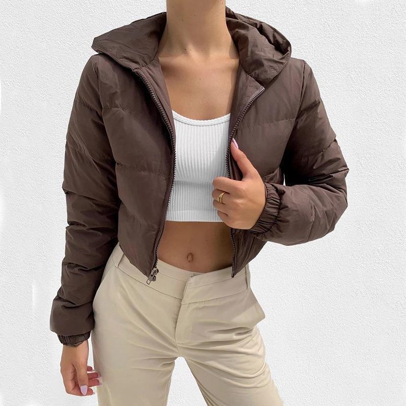 秋冬新作ファッション泡コート純色標準襟フード付きショートジャケット女性ダウンジャケット
