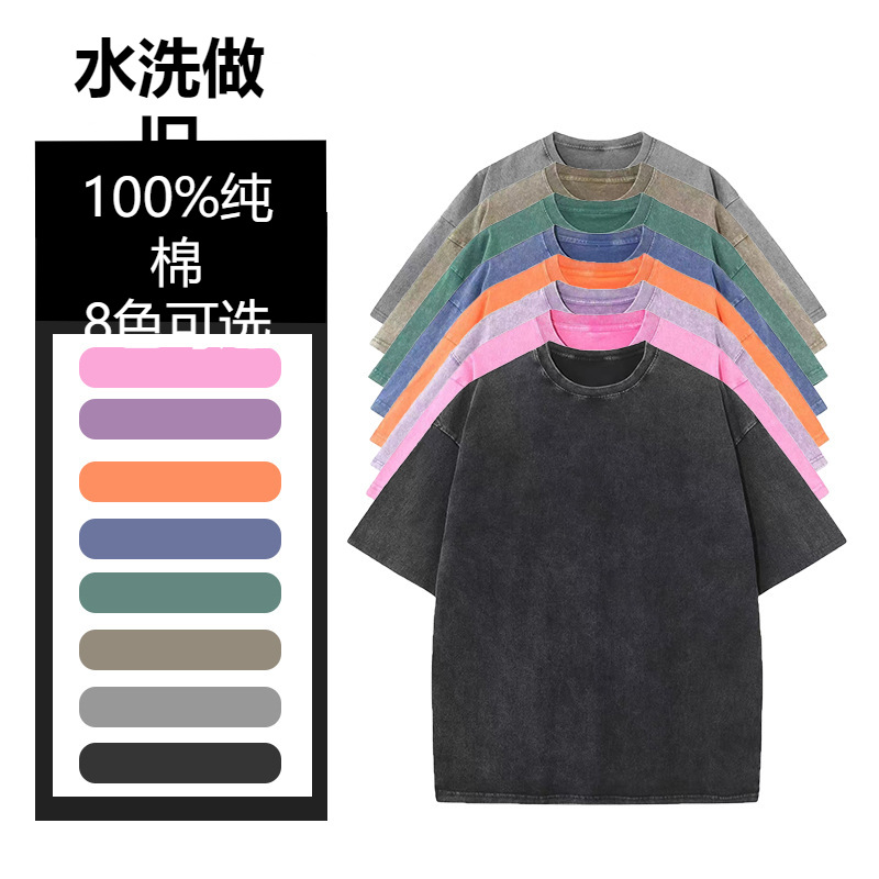 230g重ポンド100% 純綿水洗いして古い純色tシャツdiyゆるいサイズoversize男女半袖