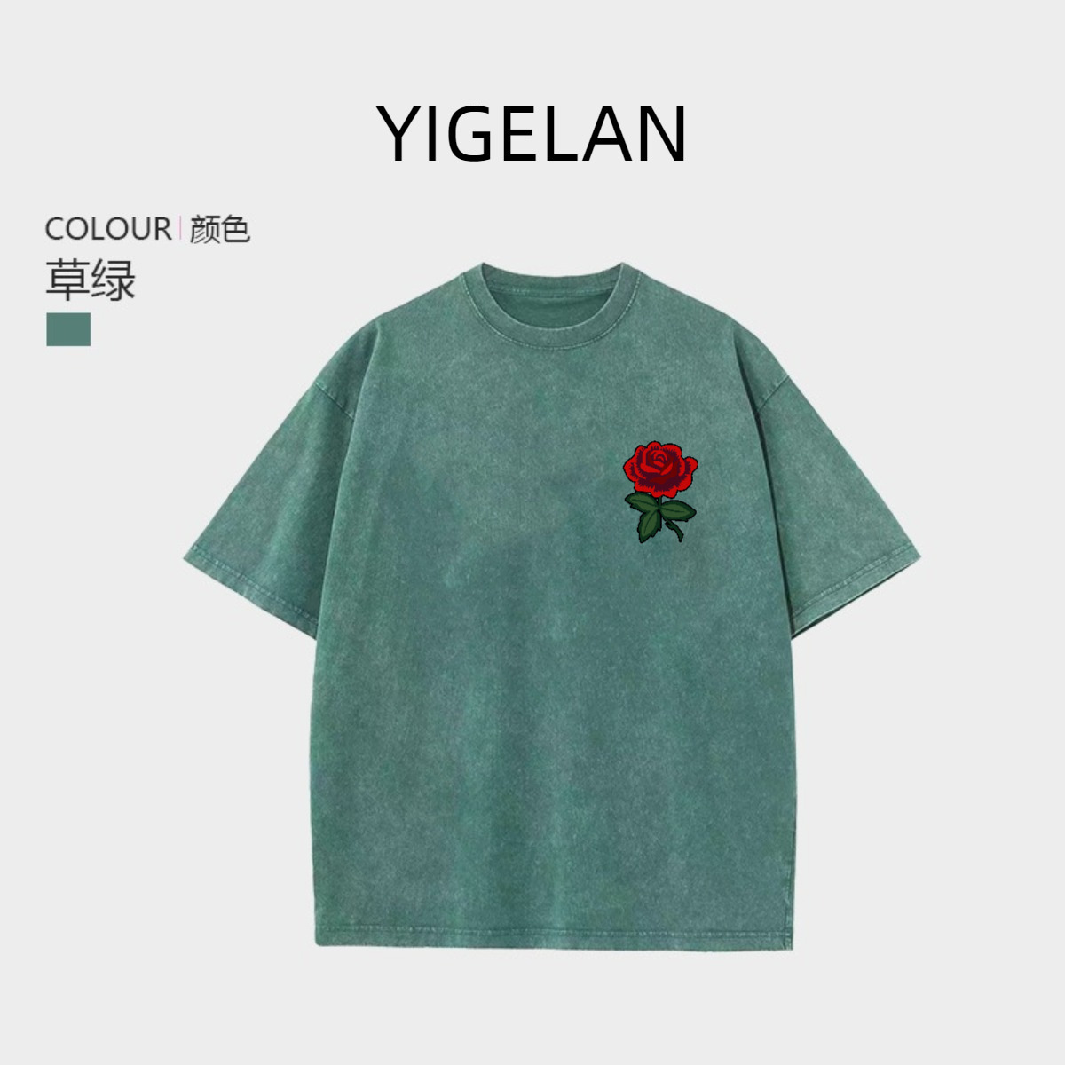 男女同金で古い100% 綿の水洗いtシャツの胸のバラのプリントがゆったりしています。
