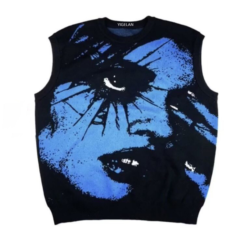 欧米風暗黒ゴシック式ニットセーター肩の顔ジャカード袖なしベスト