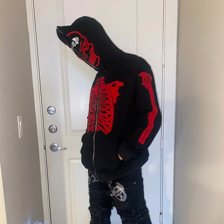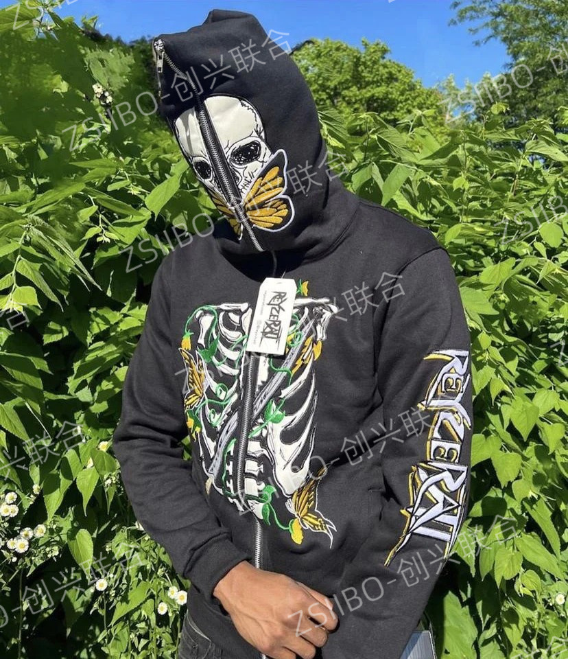 アマゾンの欧米のスカルの骨格の潮流はヒップホップの街頭の男性のタイプの衛衣のファスナーと帽子のコートの婦人服の新型です。