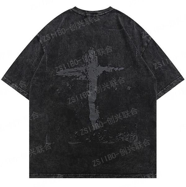 2023 新ウォッシュ加工 Y2k ヒップホップロック Tシャツプリントコットンウォッシュルーズ男性と女性の半袖トップ