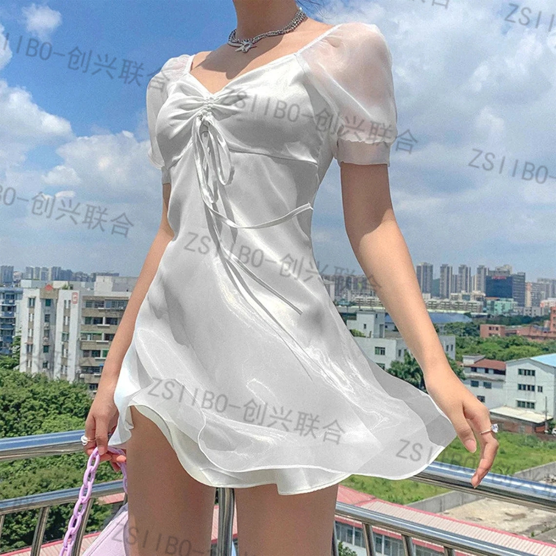 コルセットの魚の骨の泡のミニスカートの夏の新型のしわの修身のサスペンダーの蓬のワンピースはとても短いです。