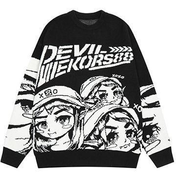 欧米のアマゾンクロスボーダー卸売日本ファッションカジュアル漫画ストリート風ニットセーターy2kレディースセーター