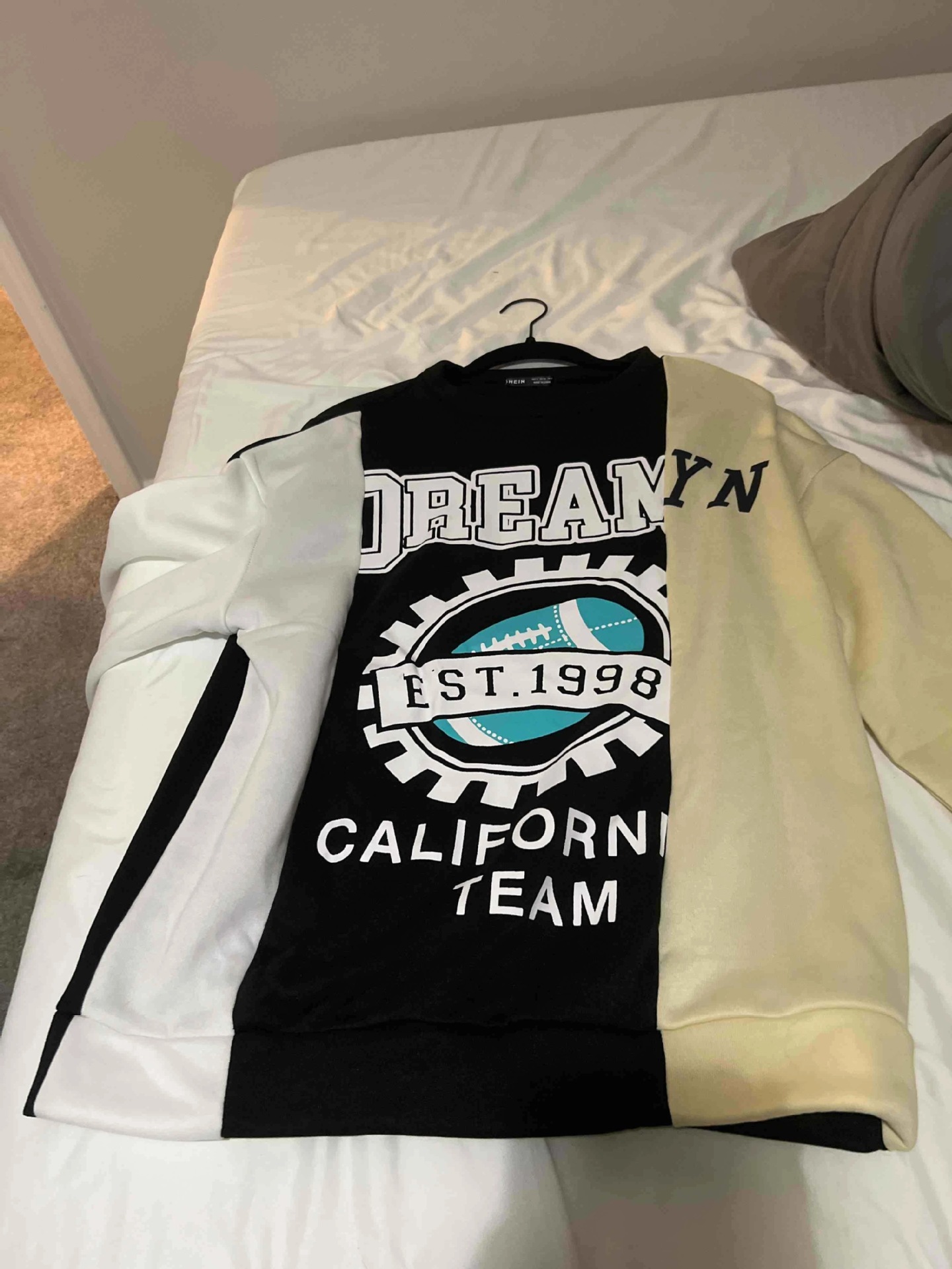 大きいサイズのゆったりしたプルオーバーのフードと大学生のスケッチのアニメキャラクターのアルファベットのプリント