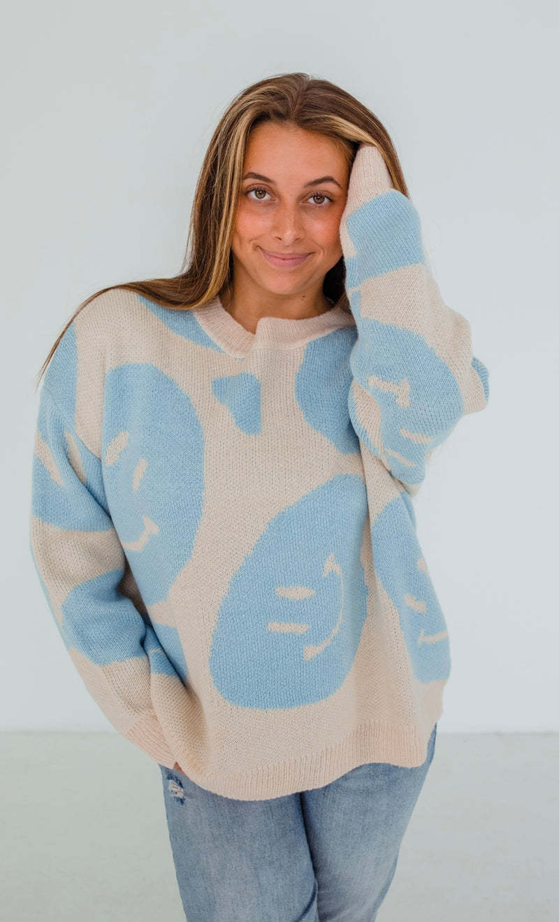 怠惰なニットウェアの女性秋冬ins潮牌クロスボーダー笑顔セーター欧米のゆるい丸首セーターの女性