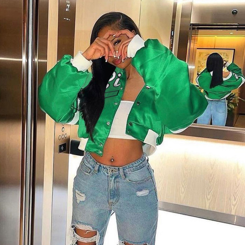 Yj22307英語のアルファベットの刺繍は色のアメリカの野球の服のコートの女性の街頭の潮人の丸首の長袖の上着にぶつかります。