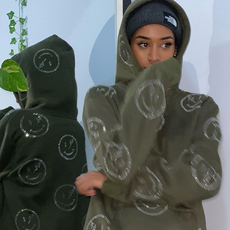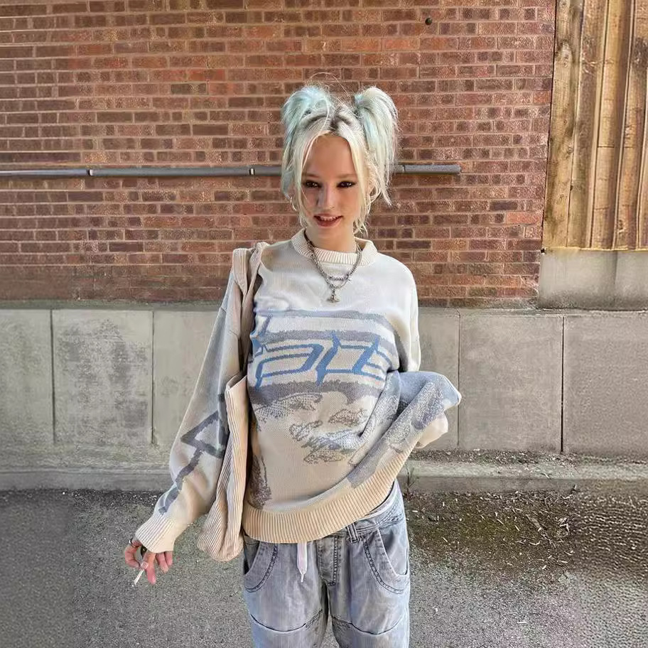 越境秋冬新型街頭対外貿易セータープリントセーター2022個性カジュアル丸首衛衣女