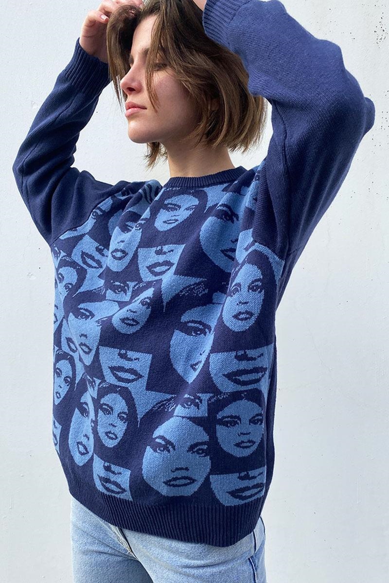 欧米の秋の新商品のセーターのクロスボーダーのプルオーバーのセーターの女性の顔の図案の丸首のセーターの女性の秋冬のmy44070